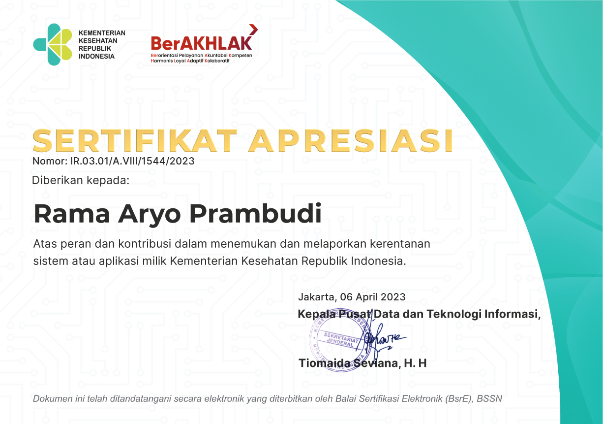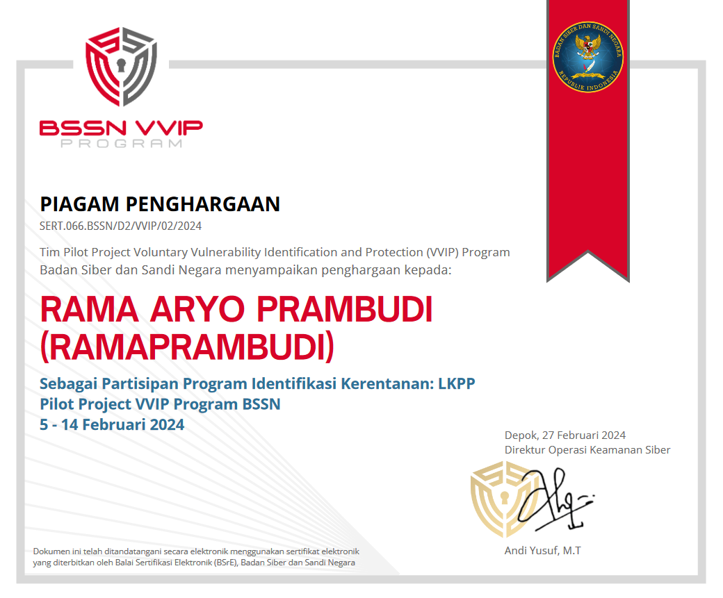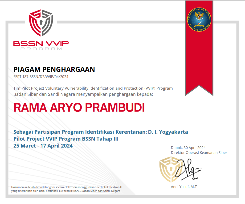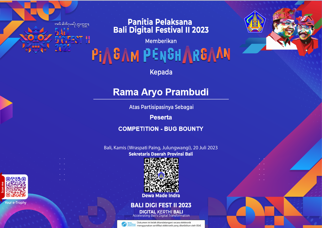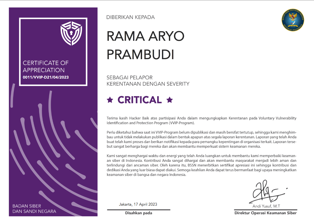 Undergraduate student at Universitas Serang Raya specializing in Web Pentester with 1 year of experience. I am very interested in web backend, web penetration tester, and bug bounty. I have also hacked companies such as Deezer, Niagahoster, Hostinger, Sari Roti, Ministry of Health, Vidio, Pertamina International Shipping, and many more!.